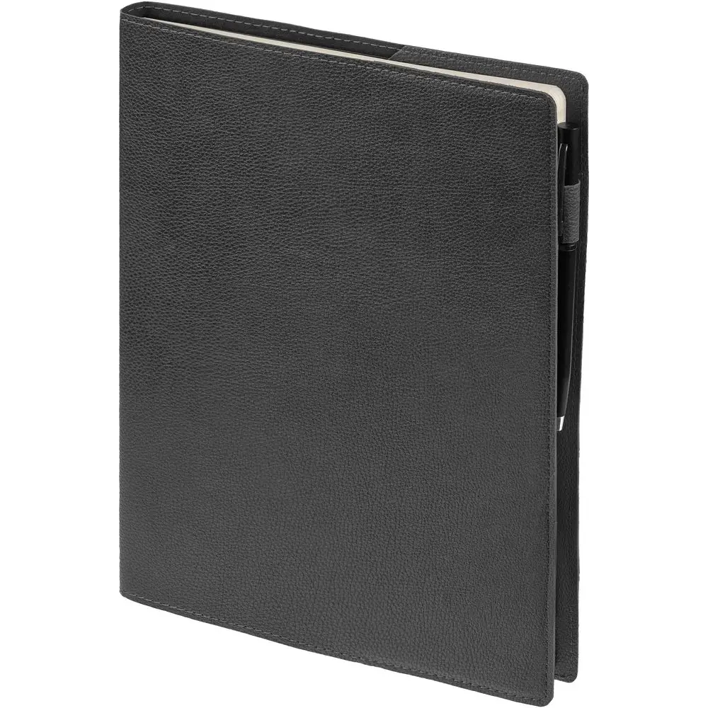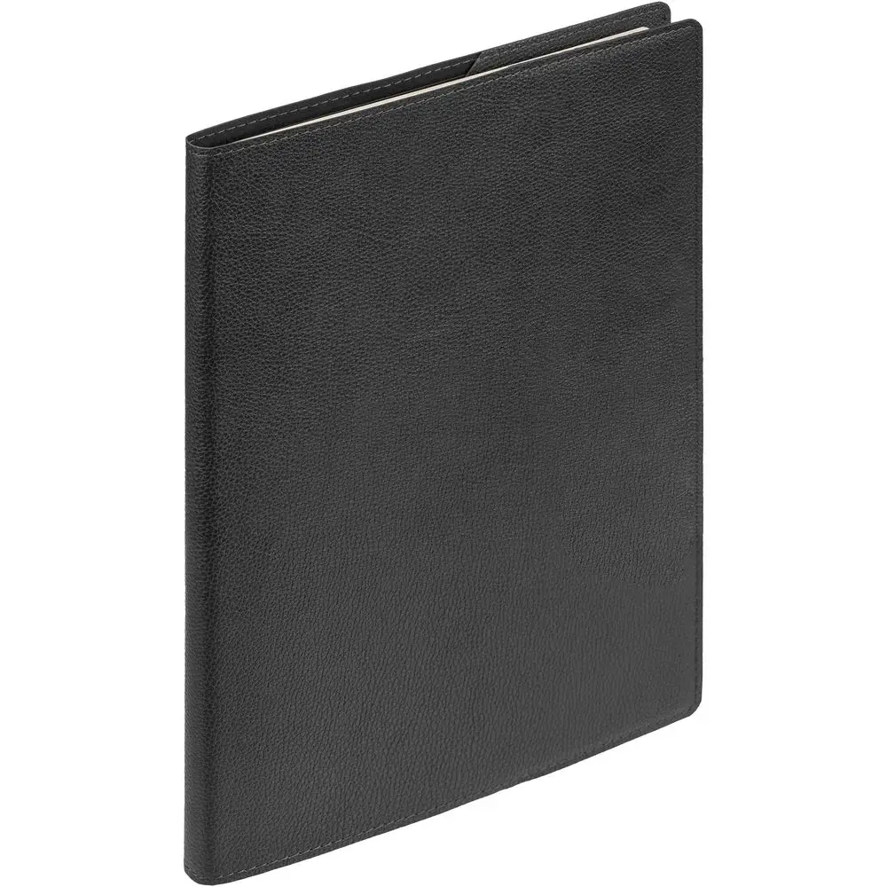 Ежедневник в суперобложке выполнен из материала La Fite, темно-серый EE, дополнен ляссе и капталом черного цвета.
