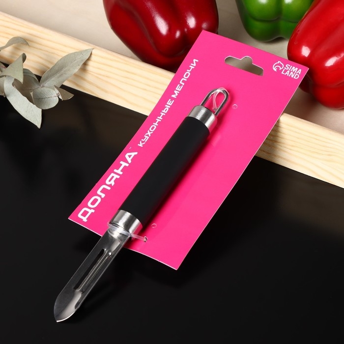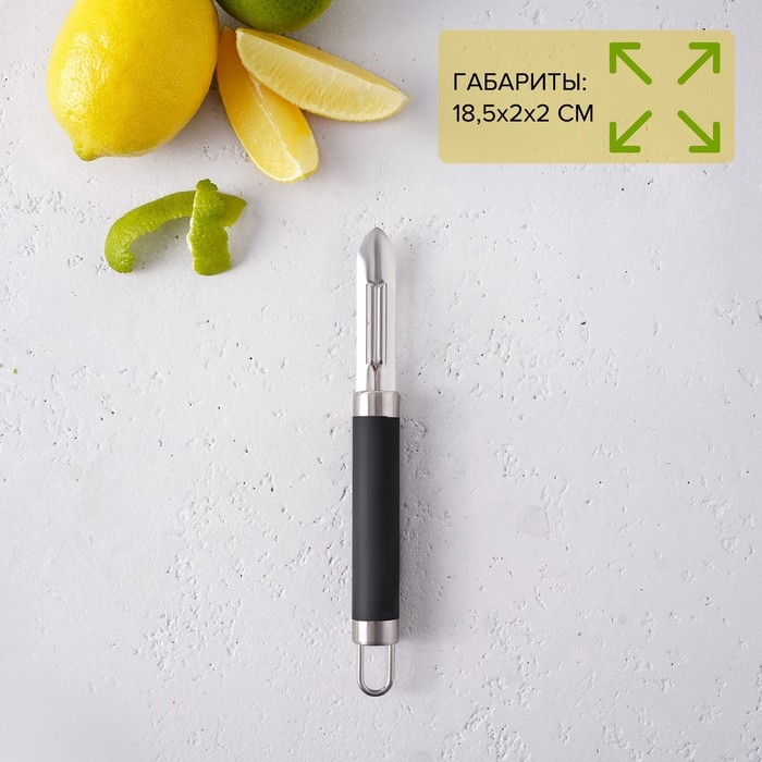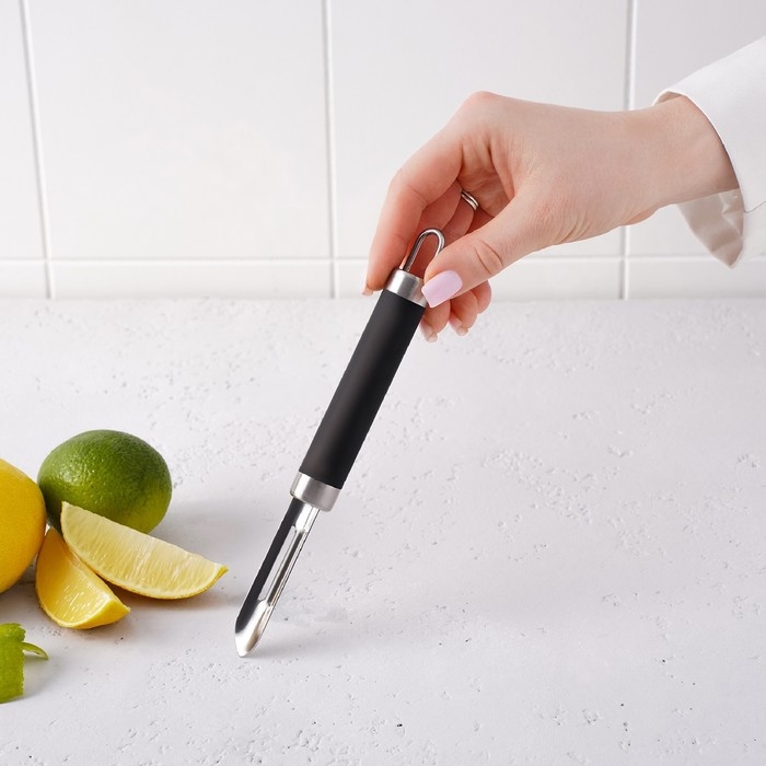 Овощечистка Доляна Venus, 18,5 см, ручка soft-touch, цвет чёрный