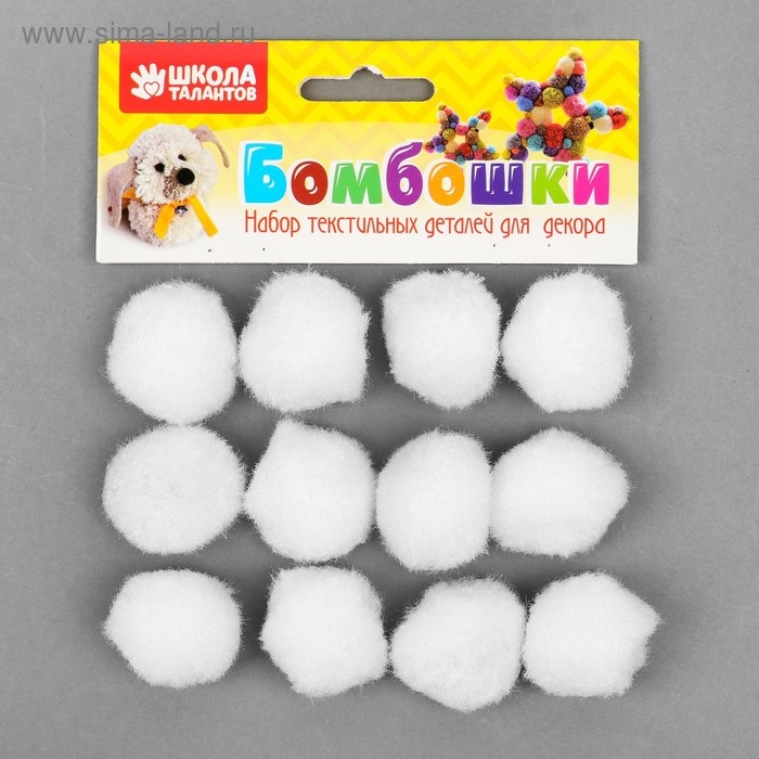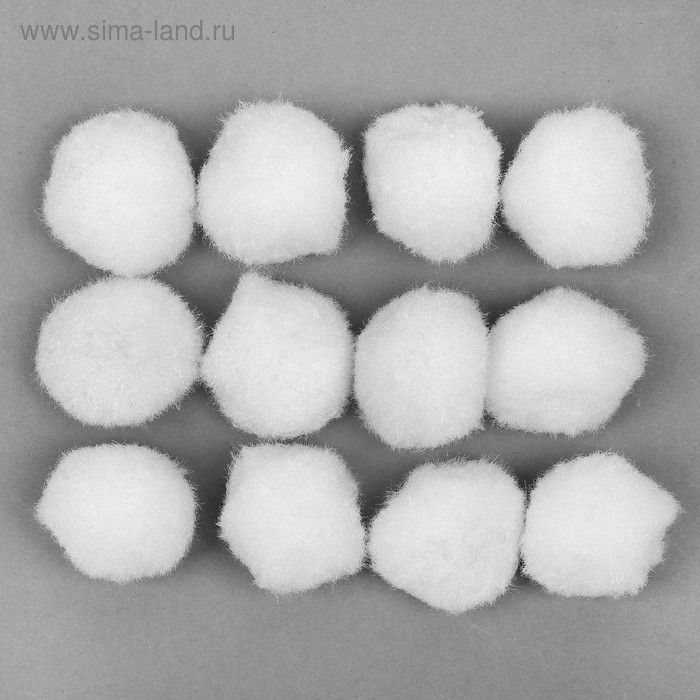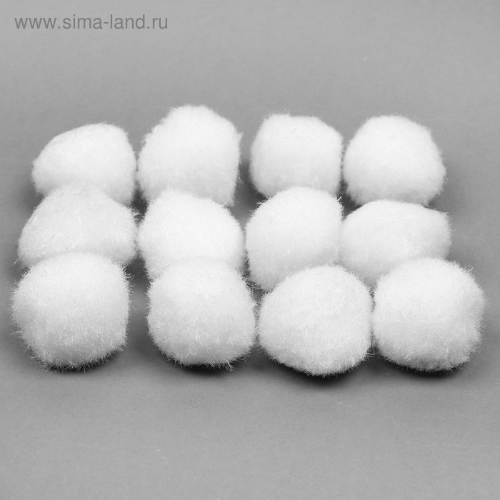 Набор текстильных деталей для декора «Бомбошки» 12 шт. набор, размер 1 шт: 3 см, цвет белый