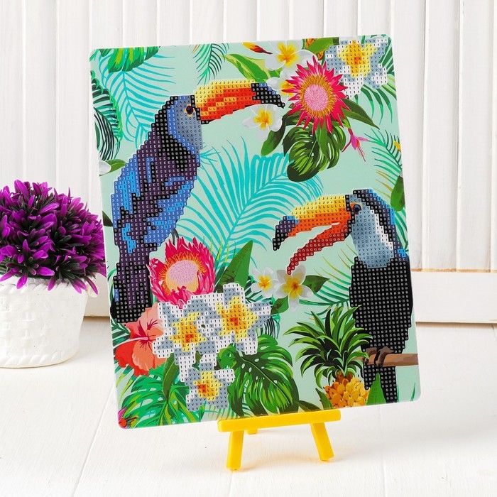 Алмазная вышивка с частичным заполнением «Туканы», с подставкой, размер картины: 21 × 25 см