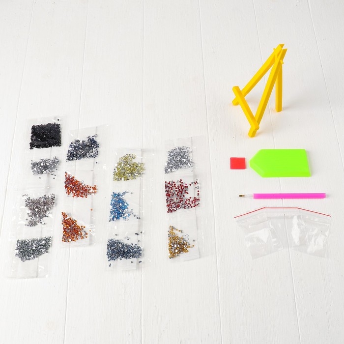 В данном наборе есть небольшой мольберт, с ним готовое творение можно удобно расположить на полке или столе без дополнительных креплений.