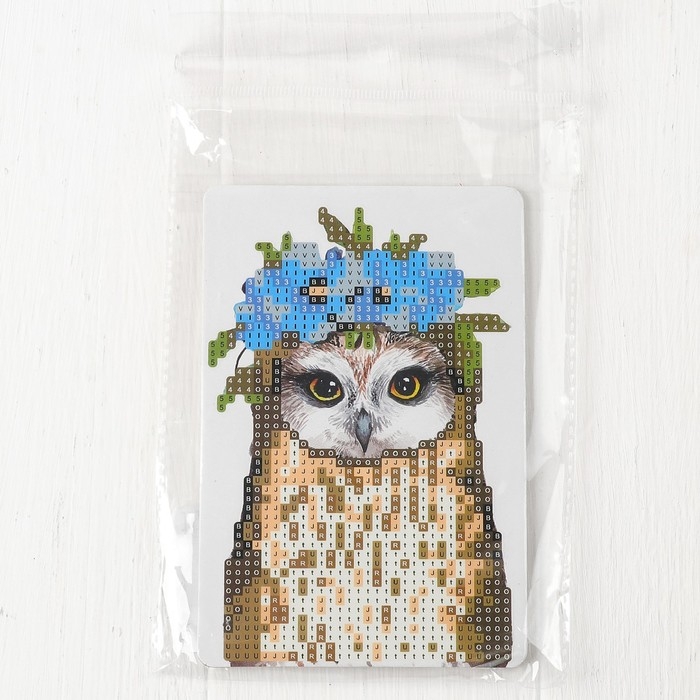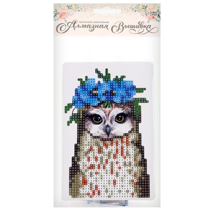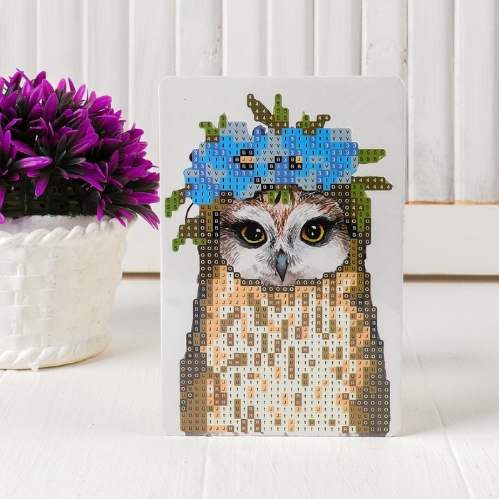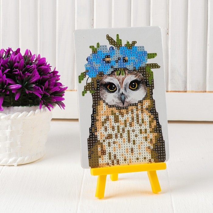 Алмазная вышивка «Совушка с венком из цветов», с частичным заполнением, с подставкой, 10 × 15 см