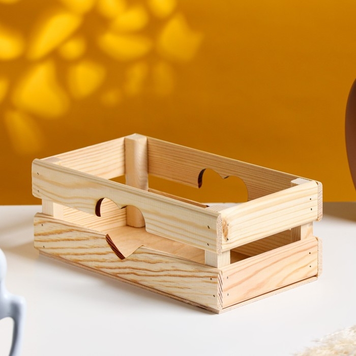 Кашпо деревянное 24.5×13.5×9 см "Двушка Лайт" реечное, сердце, натуральный Дарим Красиво