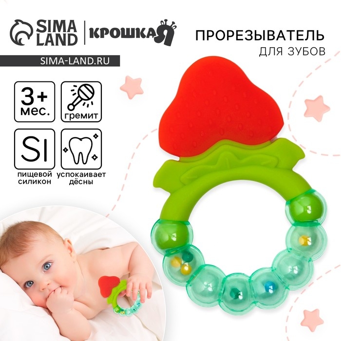 Прорезыватель силиконовый «Клубничка», с погремушкой, Крошка Я