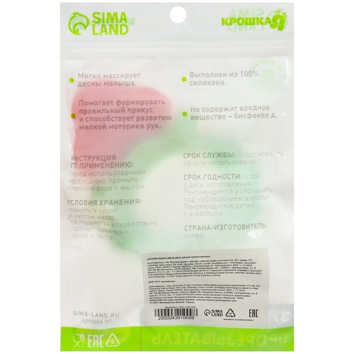 Товар изготовлен из прочного и безопасного материала (силикона) и рекомендован для использования детками с 3 месяцев.