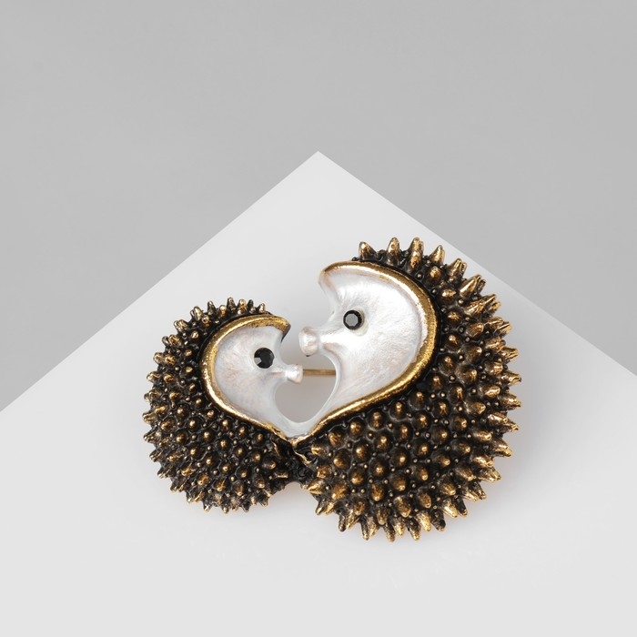 Брошь «Ёжики», цвет чёрно-белый в чернёном золоте