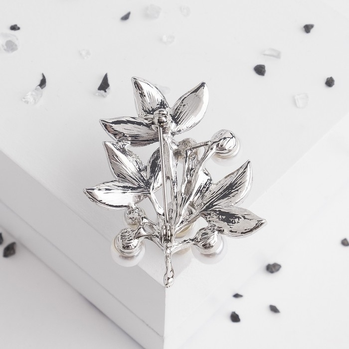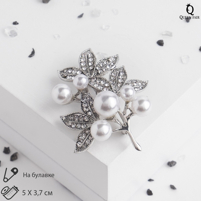 Брошь «Жемчужная капель», цвет белый в серебре
