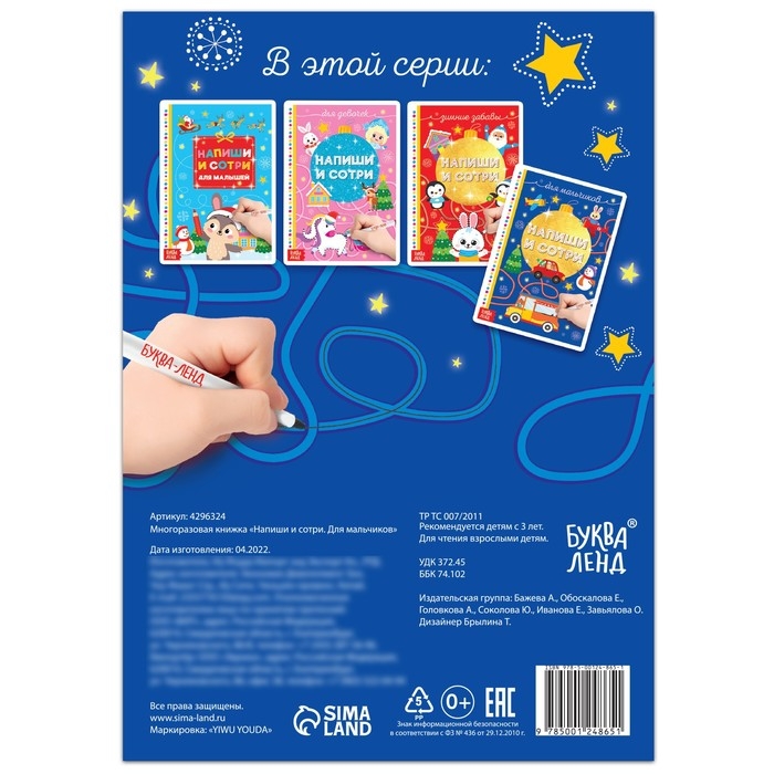 Многоразовая книжка «Напиши и сотри. Для мальчиков», 12 стр., с маркером