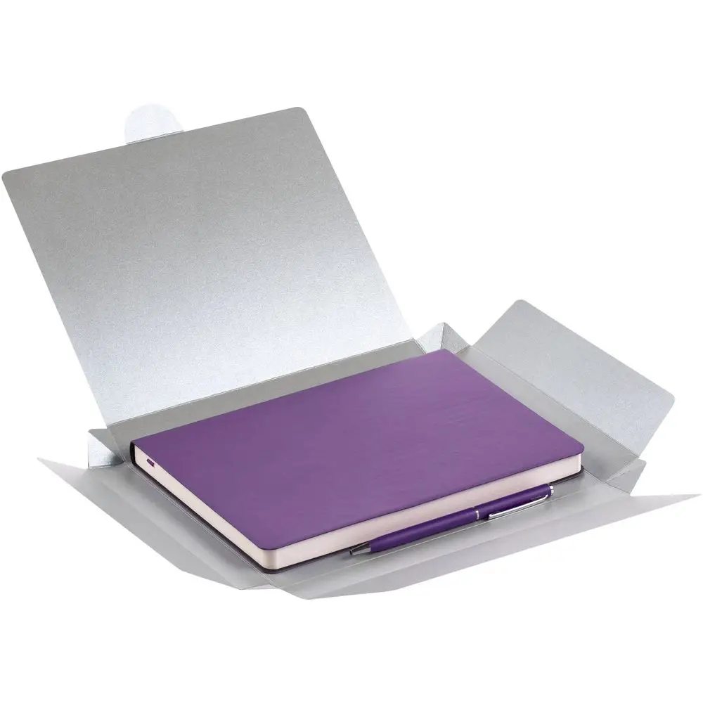 Недатированный ежедневник с гибкой обложкой из материала Latte с ляссе в цвет обложки, а также ручка в тон — в подарочной коробке из дизайнерского картона.