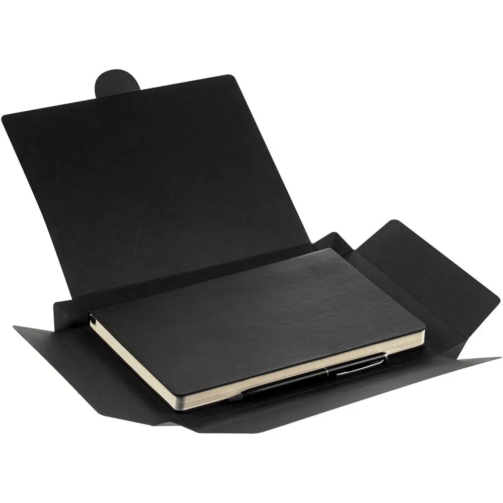 Недатированный ежедневник с гибкой обложкой из материала Latte с ляссе в цвет обложки, а также ручка в тон — в подарочной коробке из дизайнерского картона.