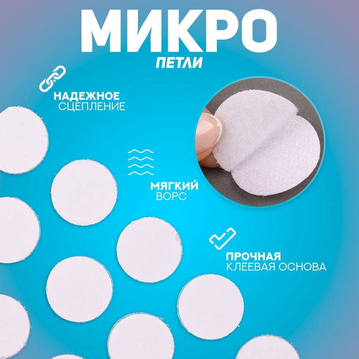 Липучка на клеевой основе «Круг», набор 30 шт., размер 1 шт: 2 см