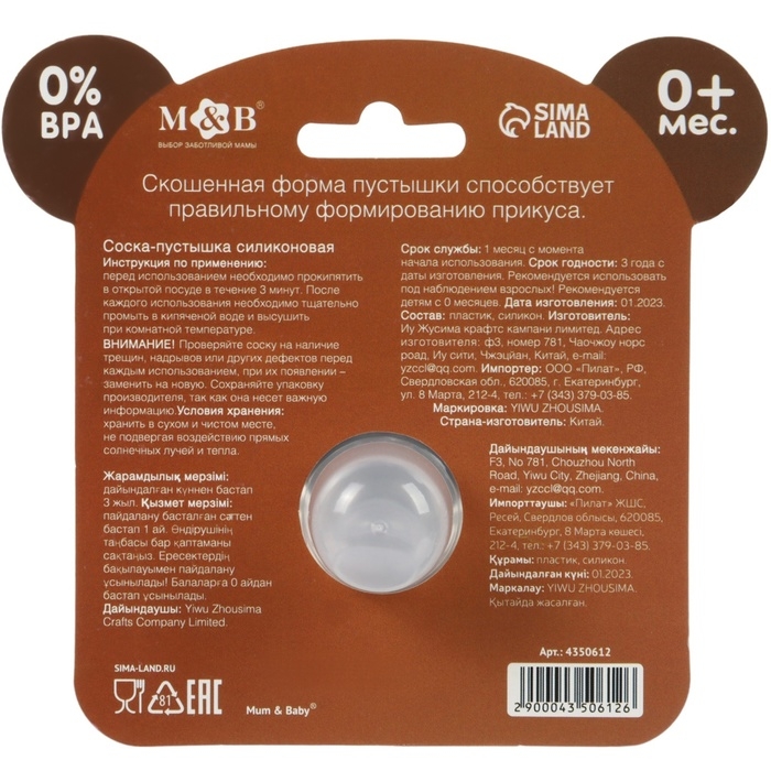 Способствует правильному формированию прикуса и препятствует заглатыванию воздуха