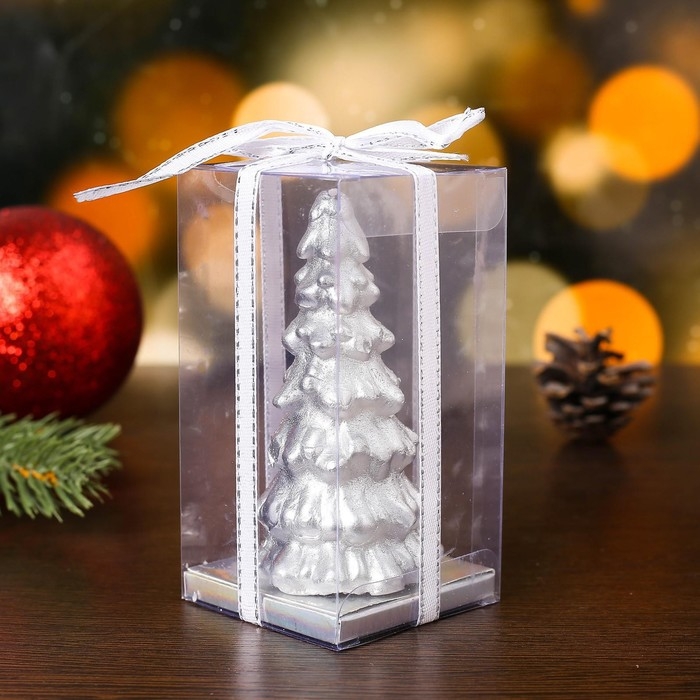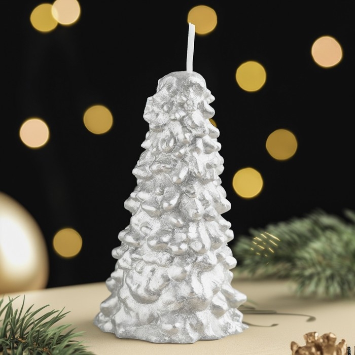 Свеча новогодняя "Ёлка" 10х5см, серебро