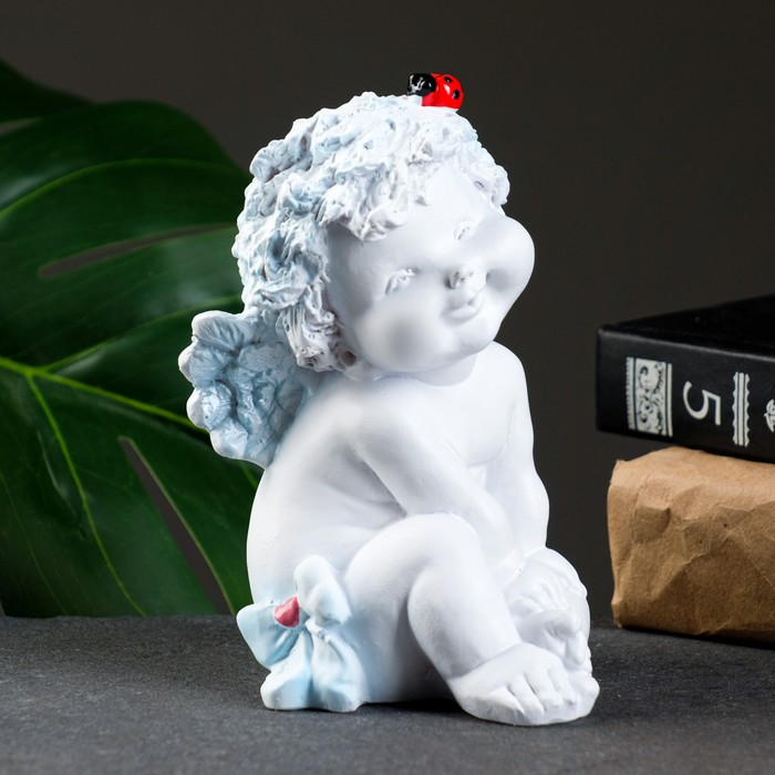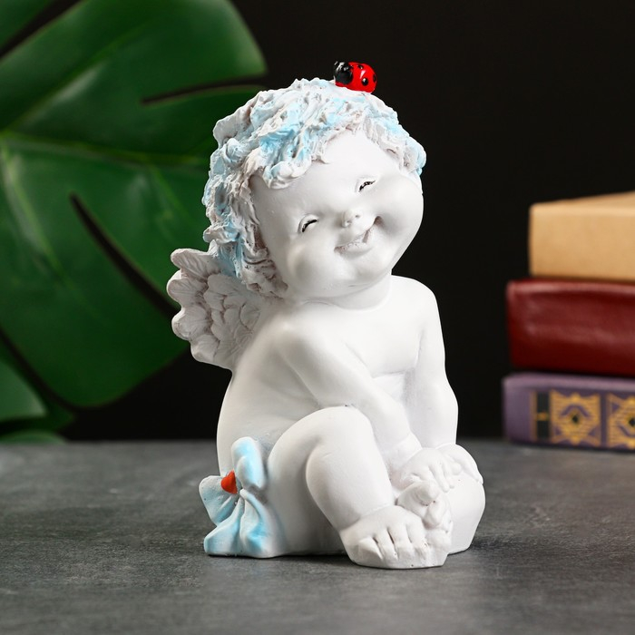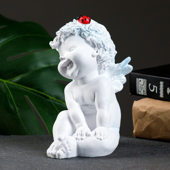 Фигура "Ангелочек с божьей коровкой" белый 8,5х10х14см