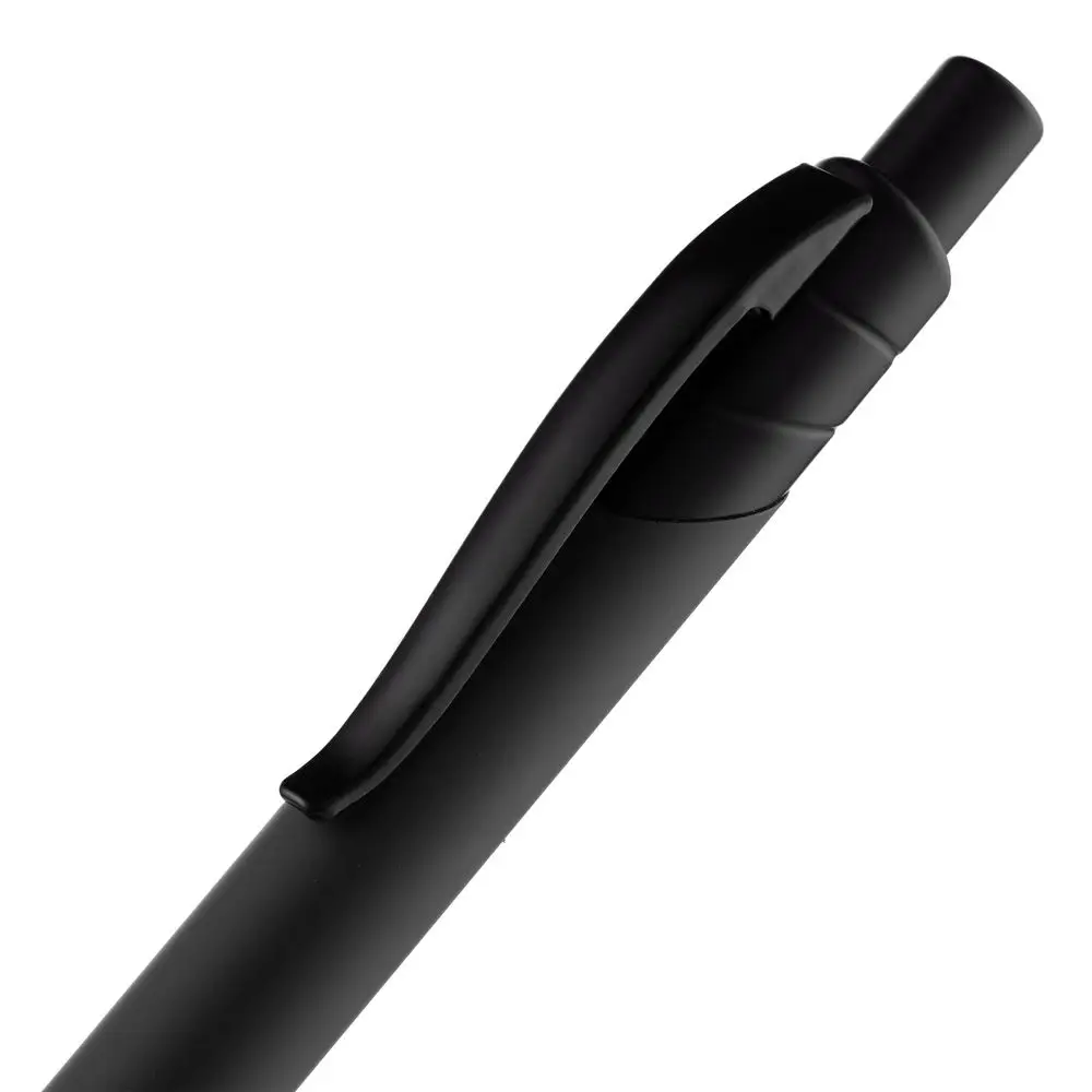 Металлическая шариковая ручка с покрытием софт-тач и черными матовыми деталями.