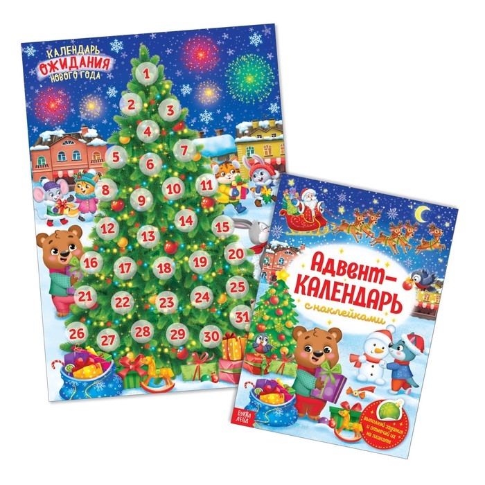 С книжкой с наклейками «Адвент- календарь» ребёнок успеет подготовиться к главному зимнему празднику и зарядится отличным настроением.