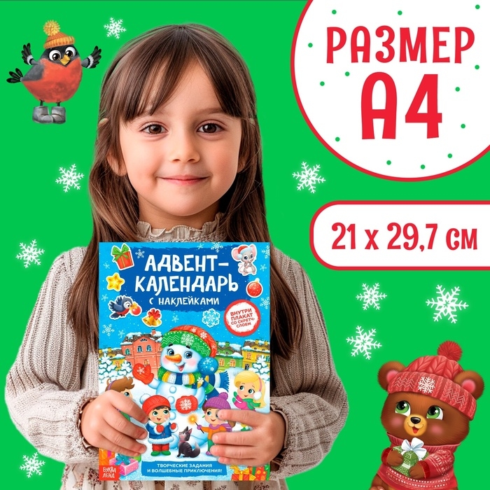 С книжкой с наклейками «Адвент- календарь. Снеговик» ребёнок успеет подготовиться к главному зимнему празднику и зарядится отличным настроением.