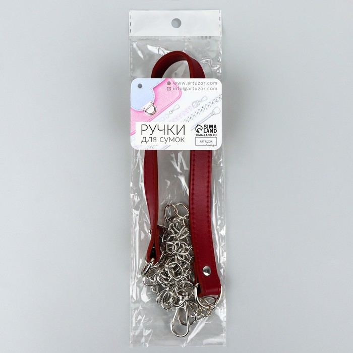 Ручка для сумки, с цепочками и карабинами, 120 × 1,8 см, цвет бордовый