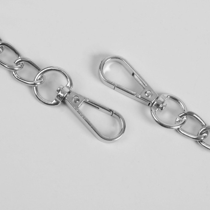 Ручка для сумки, с цепочками и карабинами, 120 × 1,8 см, цвет серебряный