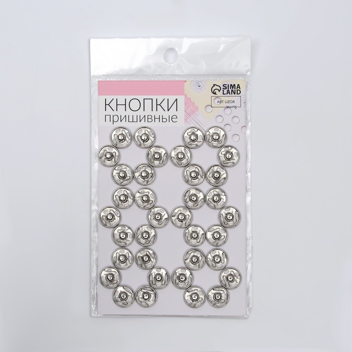 Кнопки пришивные, d = 12 мм, 36 шт, цвет серебряный