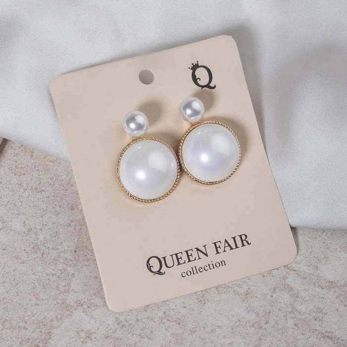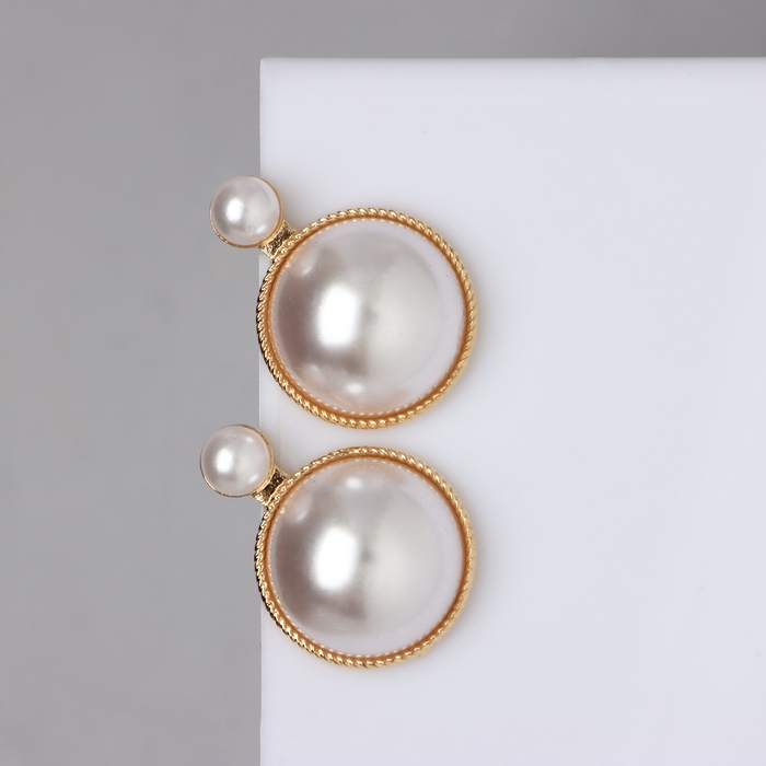 Серьги с жемчугом «Великолепие» два круга, цвет белый в золоте