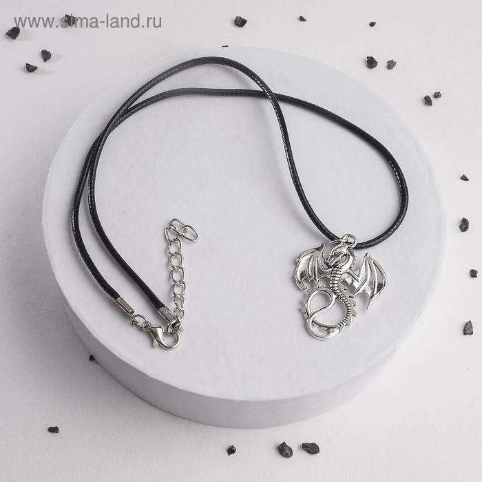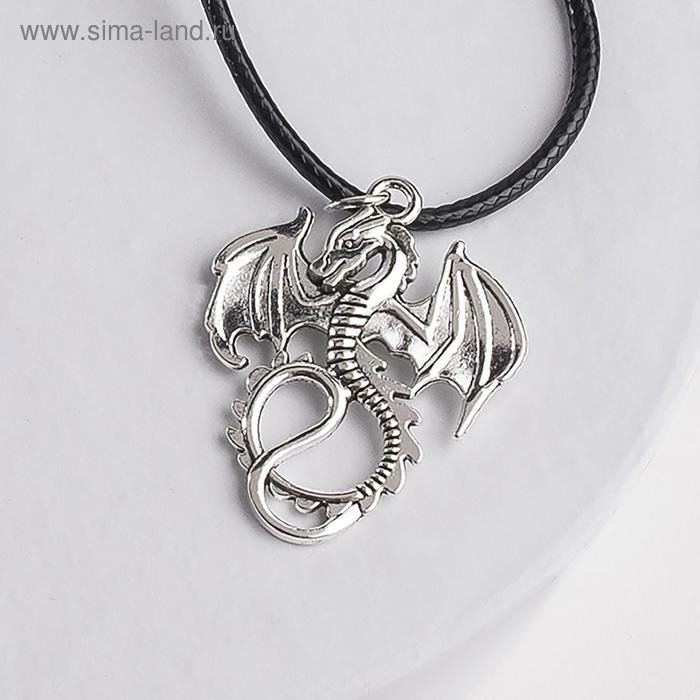 Кулон на шнурке «Дракон» хвостатый, цвет чернёное серебро на чёрном шнурке, 42 см
