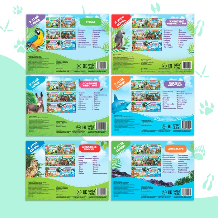 Обучающие книжки набор 6 шт. «Узнаём про всё вокруг», 108 животных и птиц