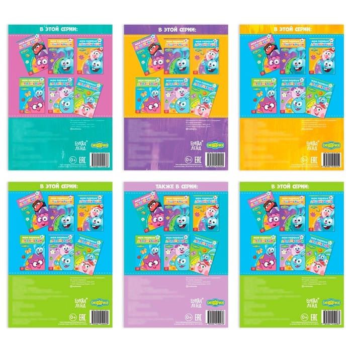 Аппликации, набор 6 шт. по 20 стр., А5, Смешарики