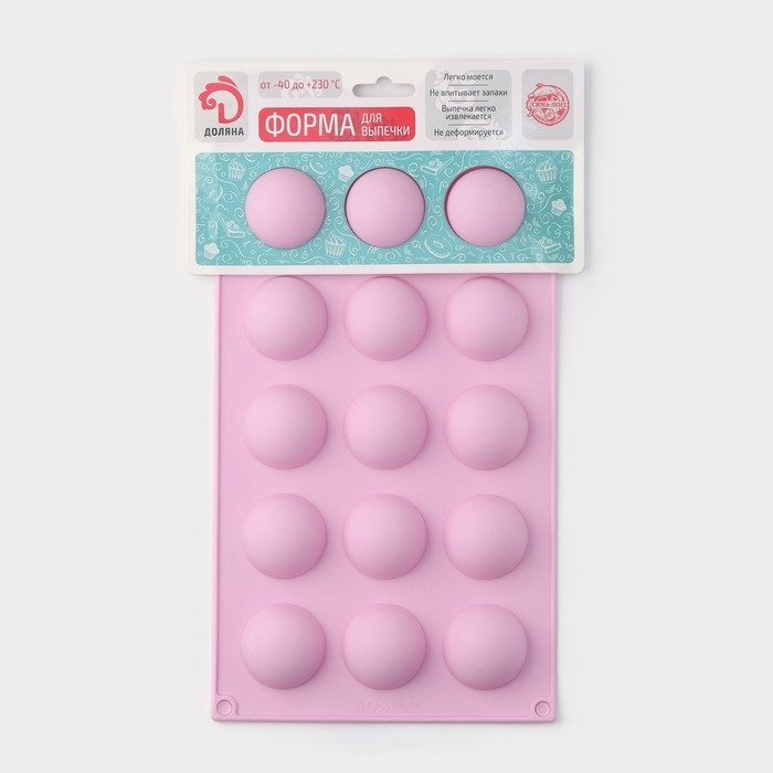 Форма для выпечки Доляна «Полусферы», силикон, 29×17 см, 15 ячеек (d=4 см), цвет МИКС