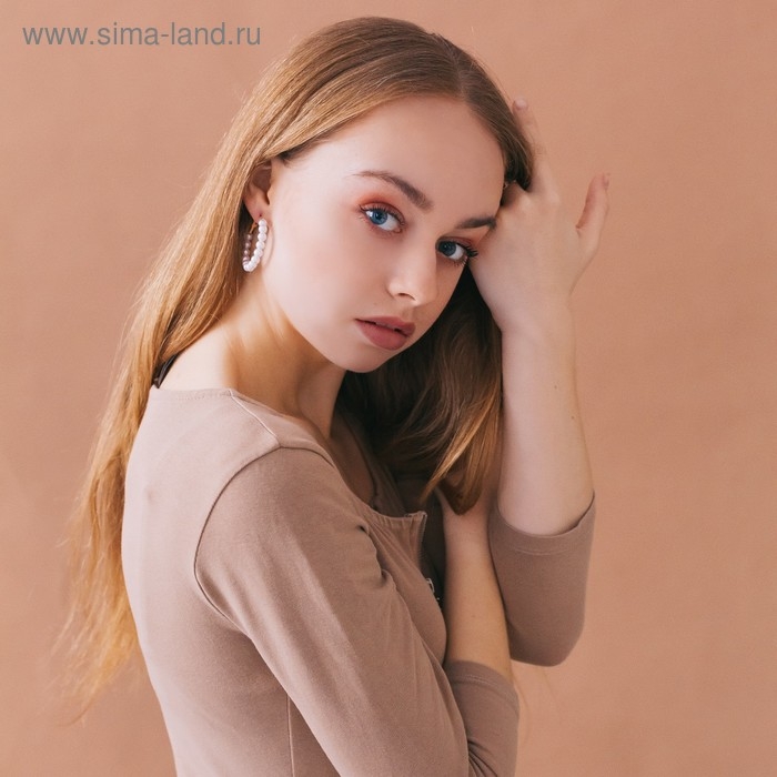Серьги-кольца «Нежность жемчуга» кольца крупные, цвет белый в золоте, d=8 см