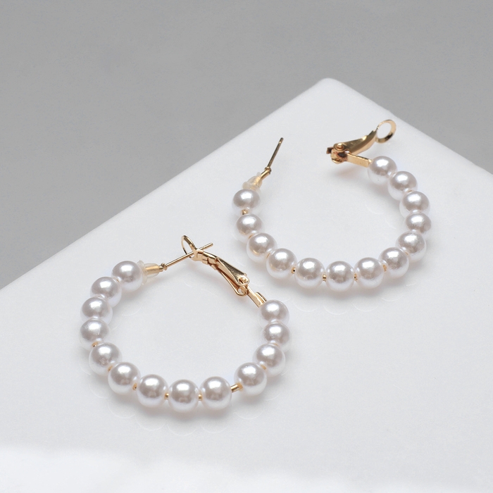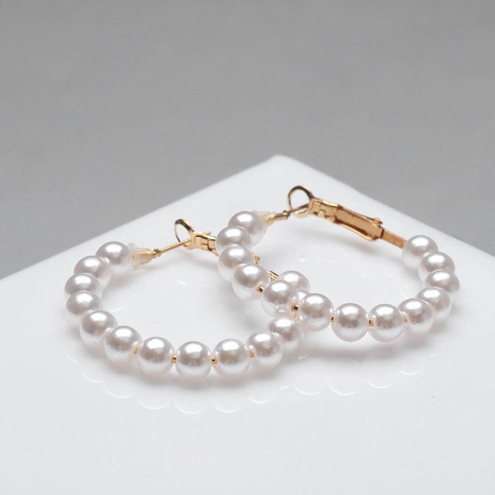 Серьги-кольца «Нежность жемчуга» кольца малые, цвет белый в золоте, d=3,5 см