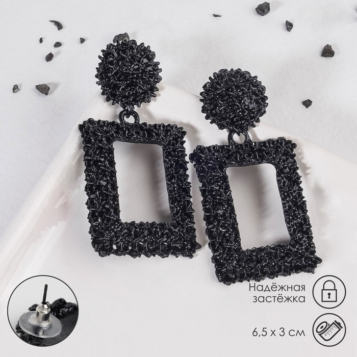 Серьги металл «Карибы» крупные, цвет чёрный