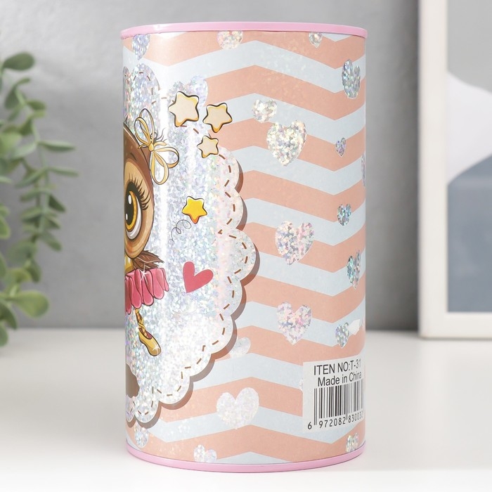 Копилка металл "Совята и сердечки" МИКС 15х8,5х8,5 см