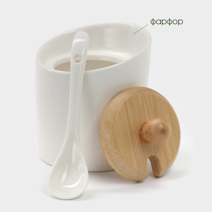 Набор фарфоровый для специй BellaTenero, 3 предмета: солонка 80 мл, перечница 80 мл, сахарница с ложкой 300 мл, цвет белый