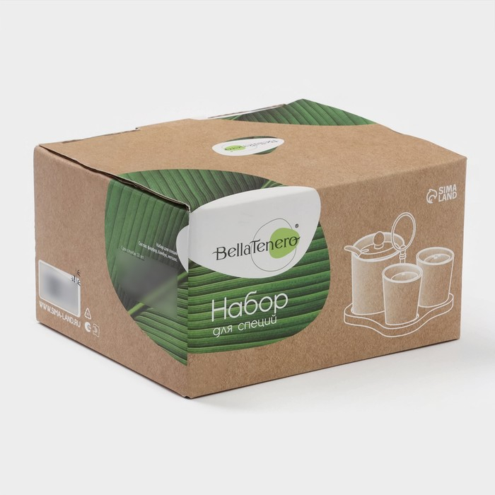 Набор для специй BellaTenero изготовлен из качественного фарфора. Кухонные изделия из фарфора отличаются прочностью и надёжностью, устойчивы к появлению царапин и резким перепадам температур. Благодаря оригинальному дизайну и причудливым формам набор отлично впишется в интерьер вашей кухни и станет настоящей изюминкой при сервировке.