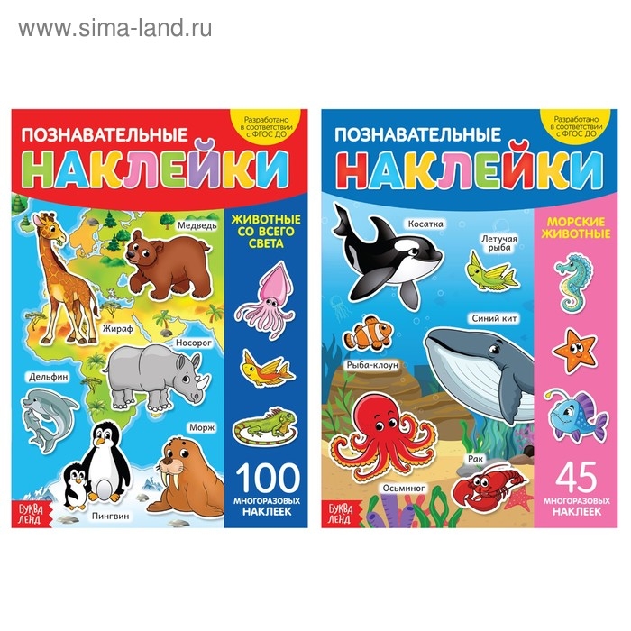 Набор многоразовых детских наклеек включает в себя 2 издания разной тематики: «Животные со всего света» и «Морские животные». Занятия с такими книгами помогут узнать много нового и потренировать важные навыки.