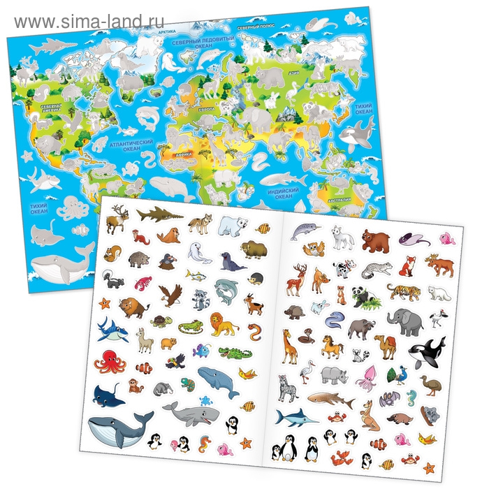 С многоразовыми наклейками ребёнок познакомится животными, которые обитают в разных концах света в море и на суше, а также разовьёт аккуратность, пространственное мышление и мелкую моторику рук.