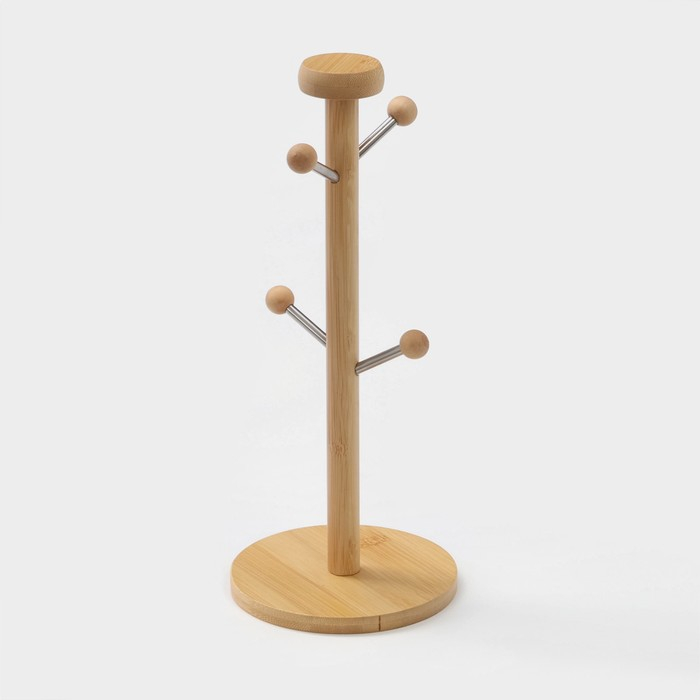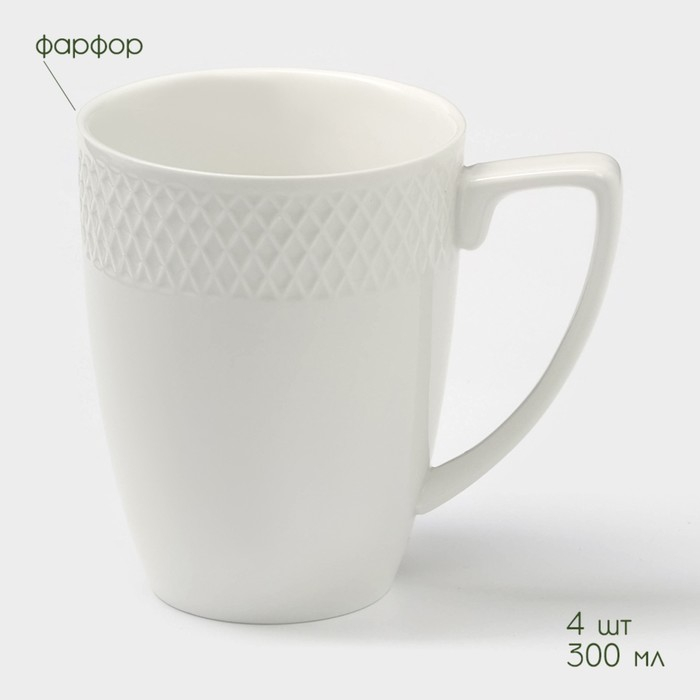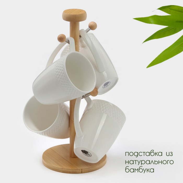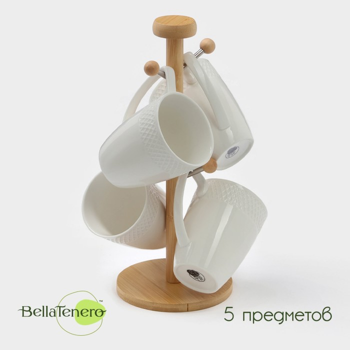 Набор фарфоровых кружек на бамбуковой подставке BellaTenero, 4 предмета: 300 мл, цвет белый