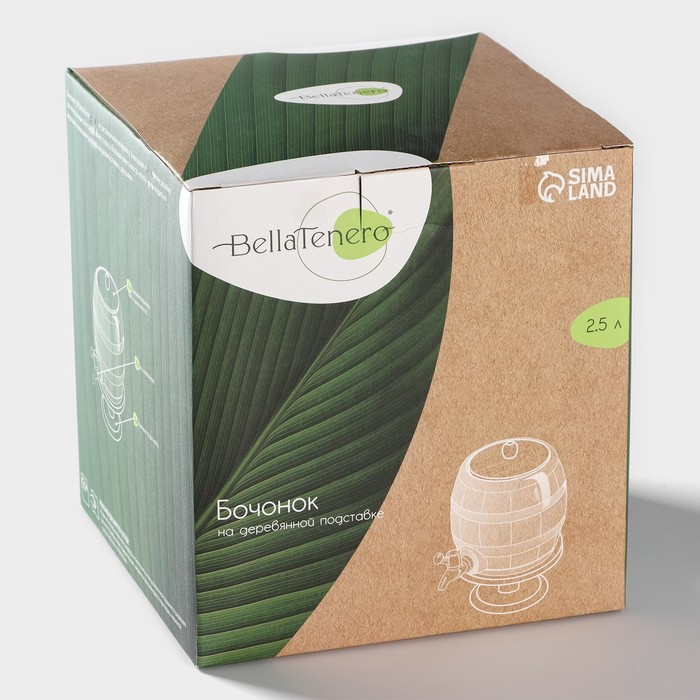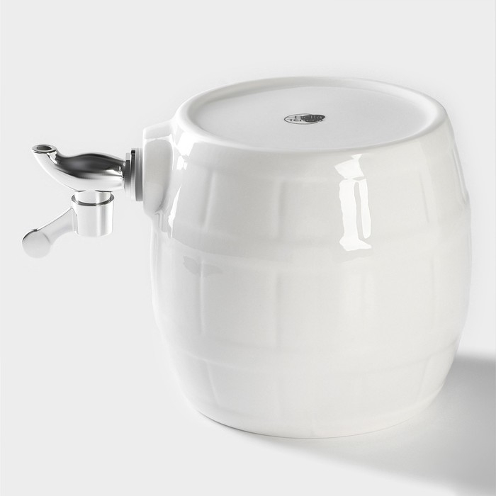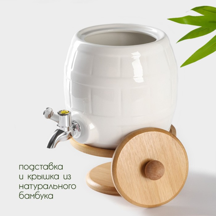 Бочонок фарфоровый с краником на деревянной подставке BellaTenero, 2,5 л, цвет белый