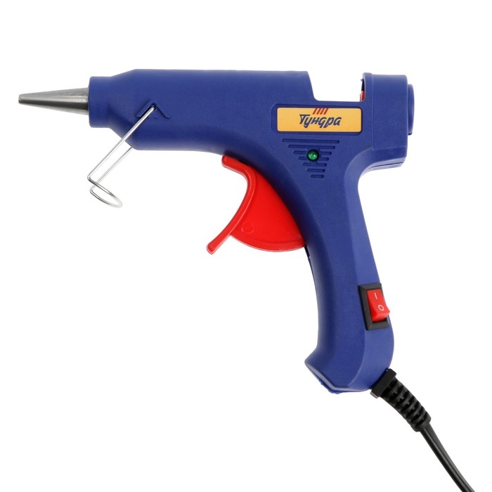 Клеевой пистолет ТУНДРА, 20 Вт, 220 В, шнур 1.2 м, выключатель, индикатор, антикапля, 7 мм