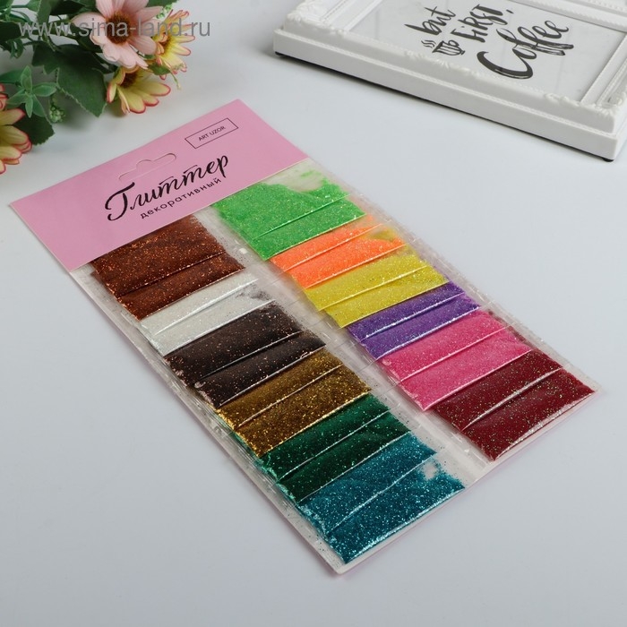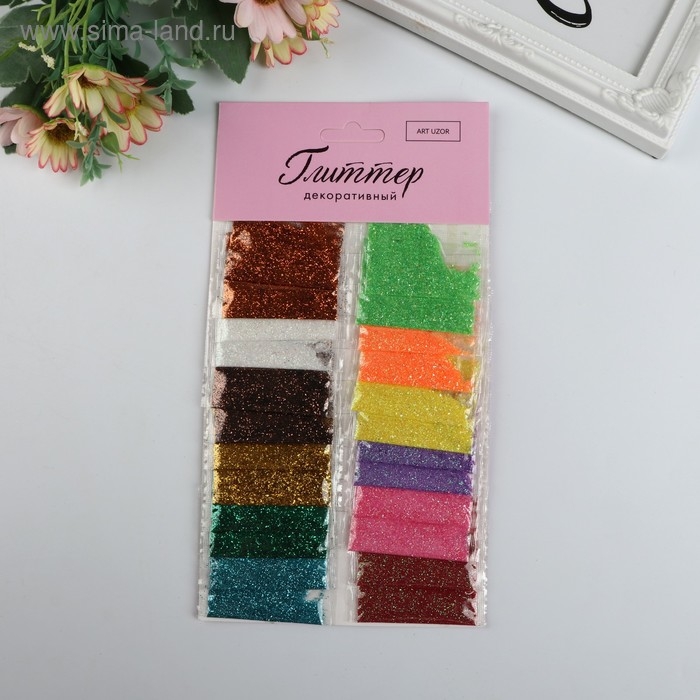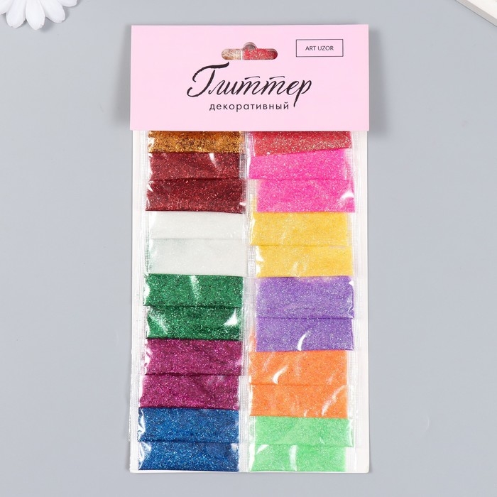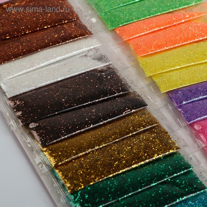Глиттер для творчества "Пудра неон" набор 24 пакета 1 пакет 2 гр 24,5х13 см