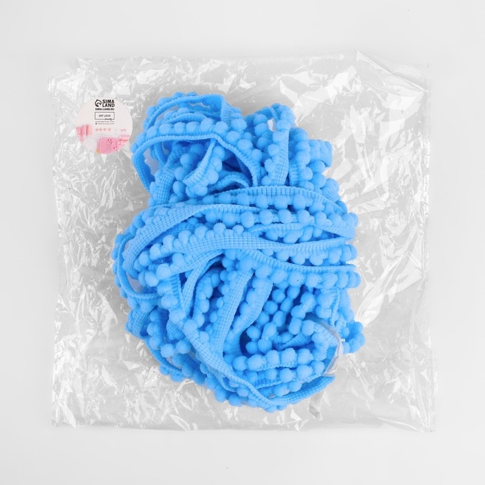 Тесьма декоративная с помпонами, 12 ± 2 мм, 8 ± 0,5 м, цвет голубой