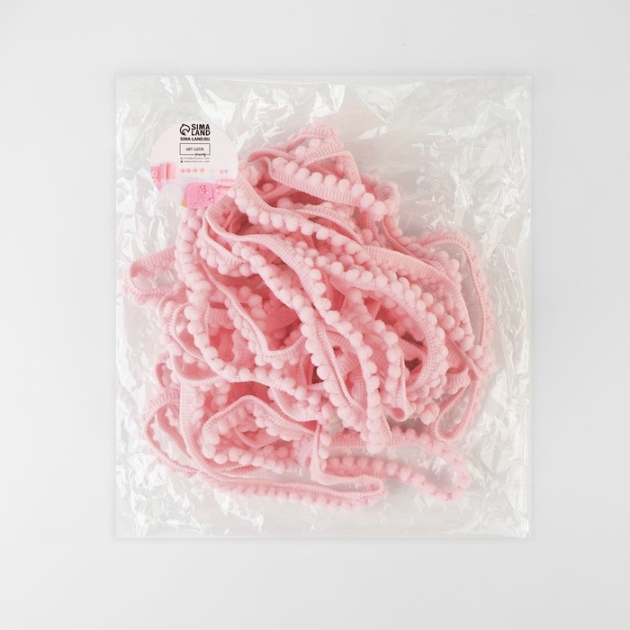 Тесьма декоративная с помпонами, 12 ± 2 мм, 9,1 ± 0,5 м, цвет розовый