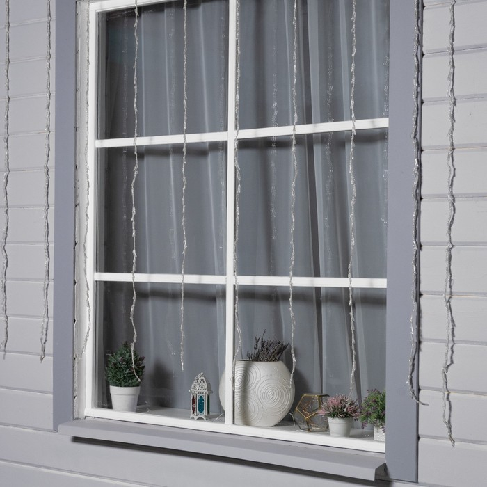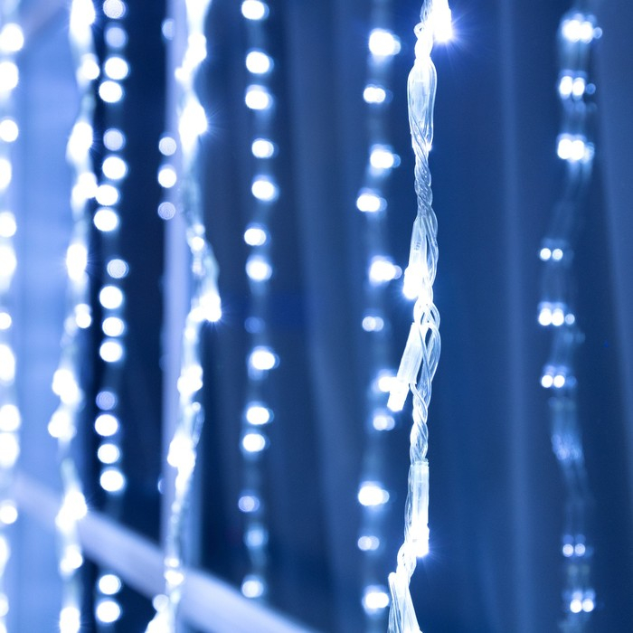 Гирлянда «Водопад» 2 × 1.5 м, IP44, прозрачная нить, 400 LED, свечение белое, 8 комбинаций режимов, 220 В