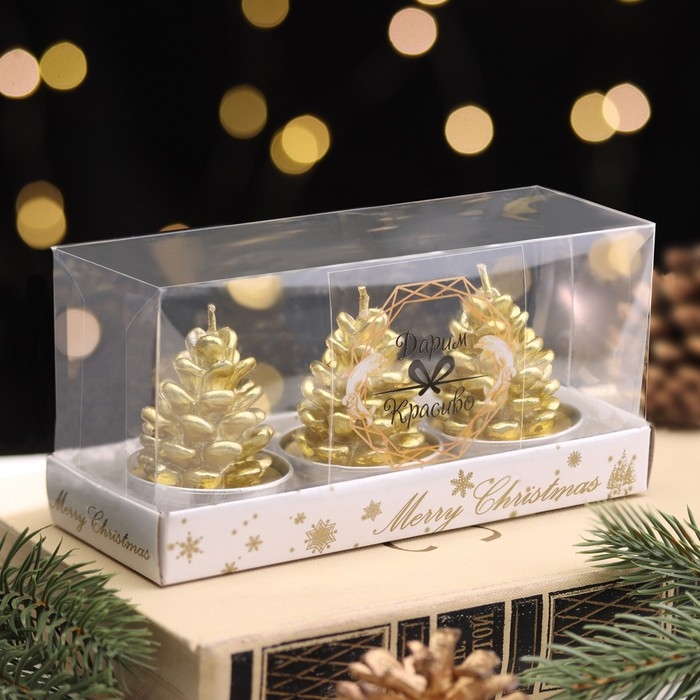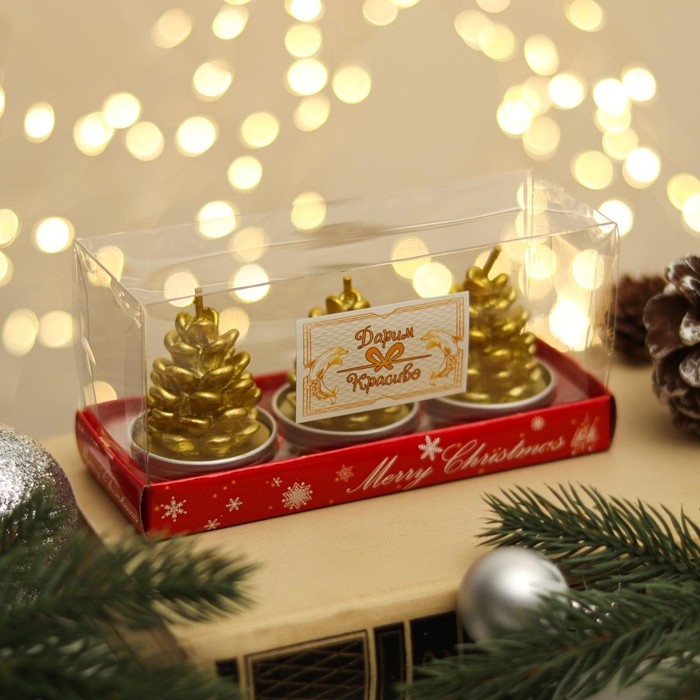 Набор свечи новогодние "Шишка золотая", 4×6 см, 3 шт