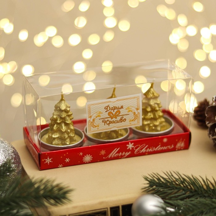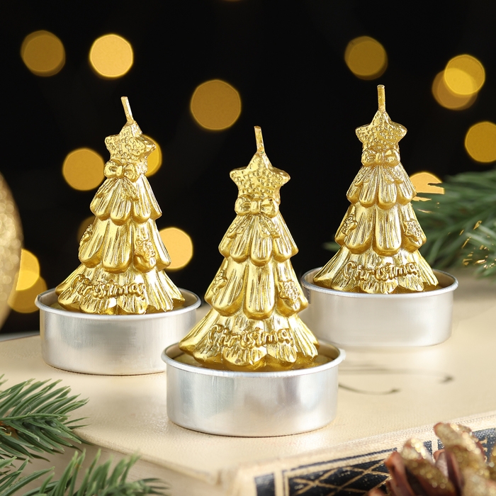 Набор свечи новогодние"Ёлка золотая", 4×6 см,