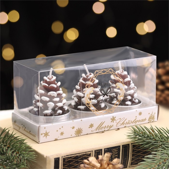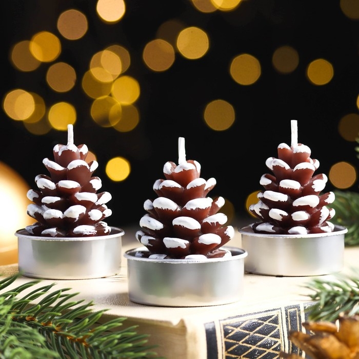 Набор свечи новогодние "Шишка", 3 шт, 4×6 см,