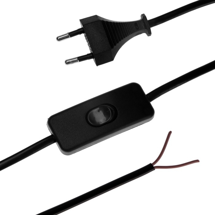 Шнур сетевой с выключателем для бра, 1,5 м, ШВВП 2 х 0.5 мм2, черный