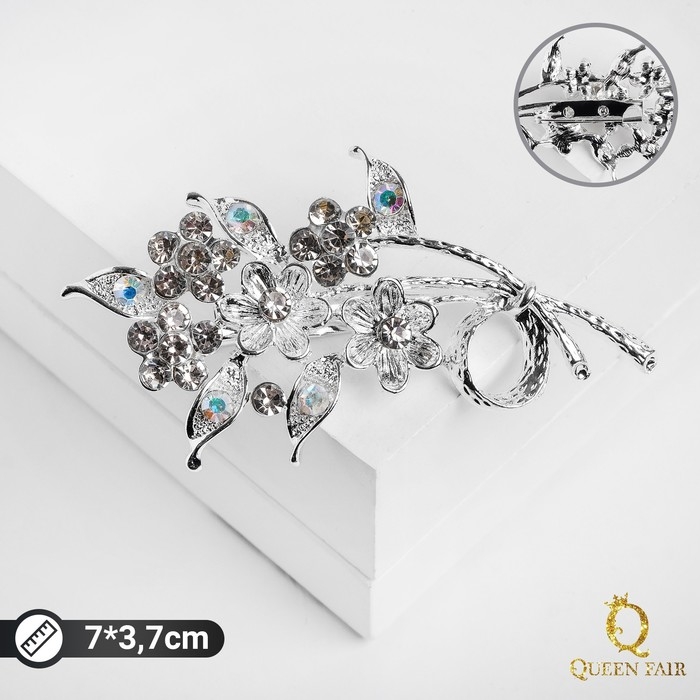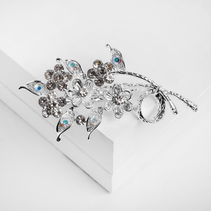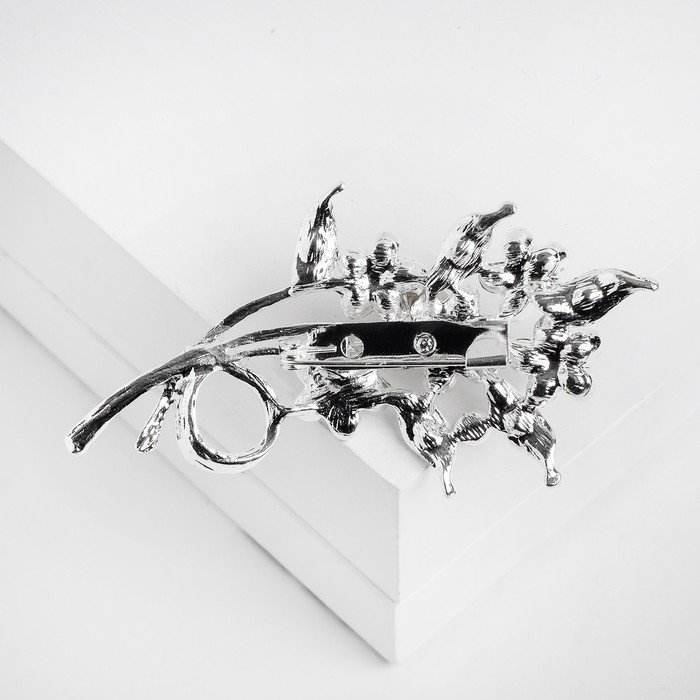 Брошь «Цветы» на ветке, цвет белый в серебре