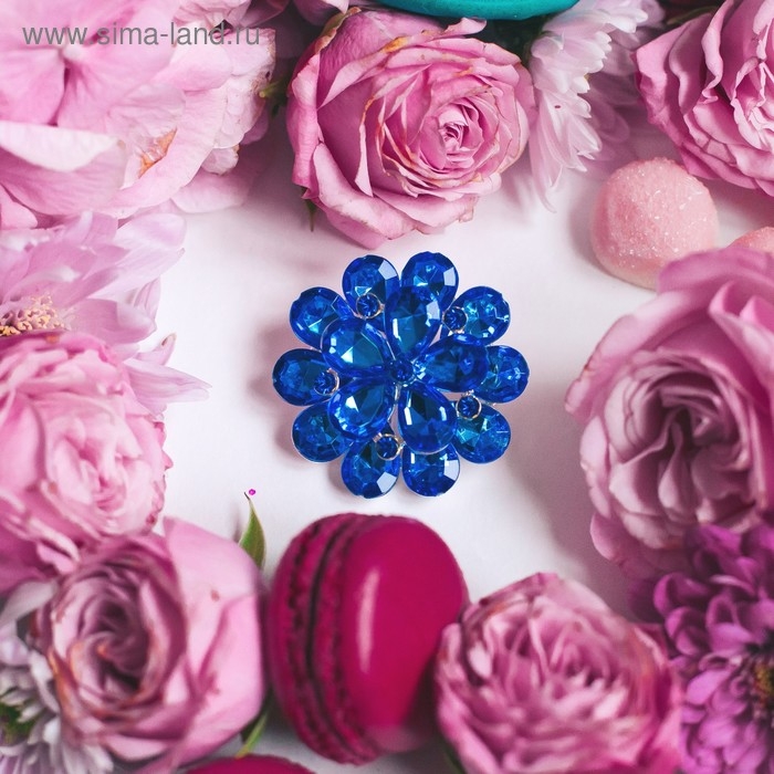 Брошь «Цветок» василёк, цвет синий в серебре